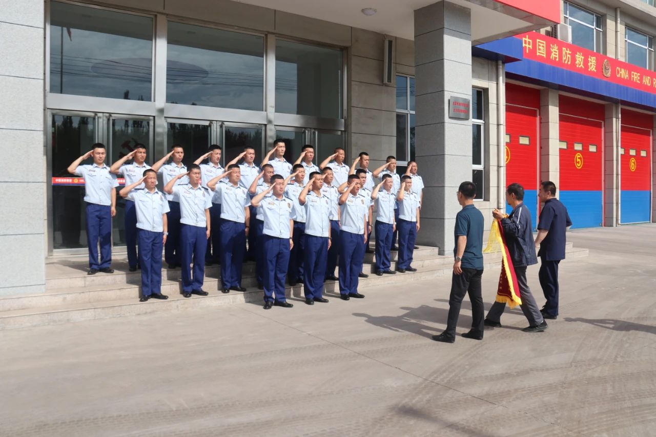薛林旺将一面写有:“花甲老人不慎坠入水井危在旦夕 消防官兵及时赶到挺身救援脱困”的锦旗赠送给消防救援特勤站。随后,卫霖生一行与消防队进行了座谈。