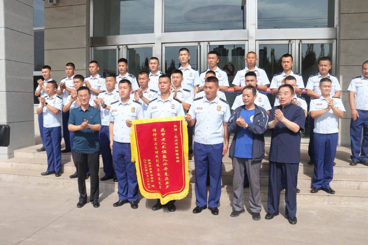 7月24日,吕梁市见义勇为协会会长卫霖生、常务副会长兼秘书长王永卫、副会长冯海砚陪同薛林旺来到北川河西路特勤站赠送锦旗,慰问消防队员。